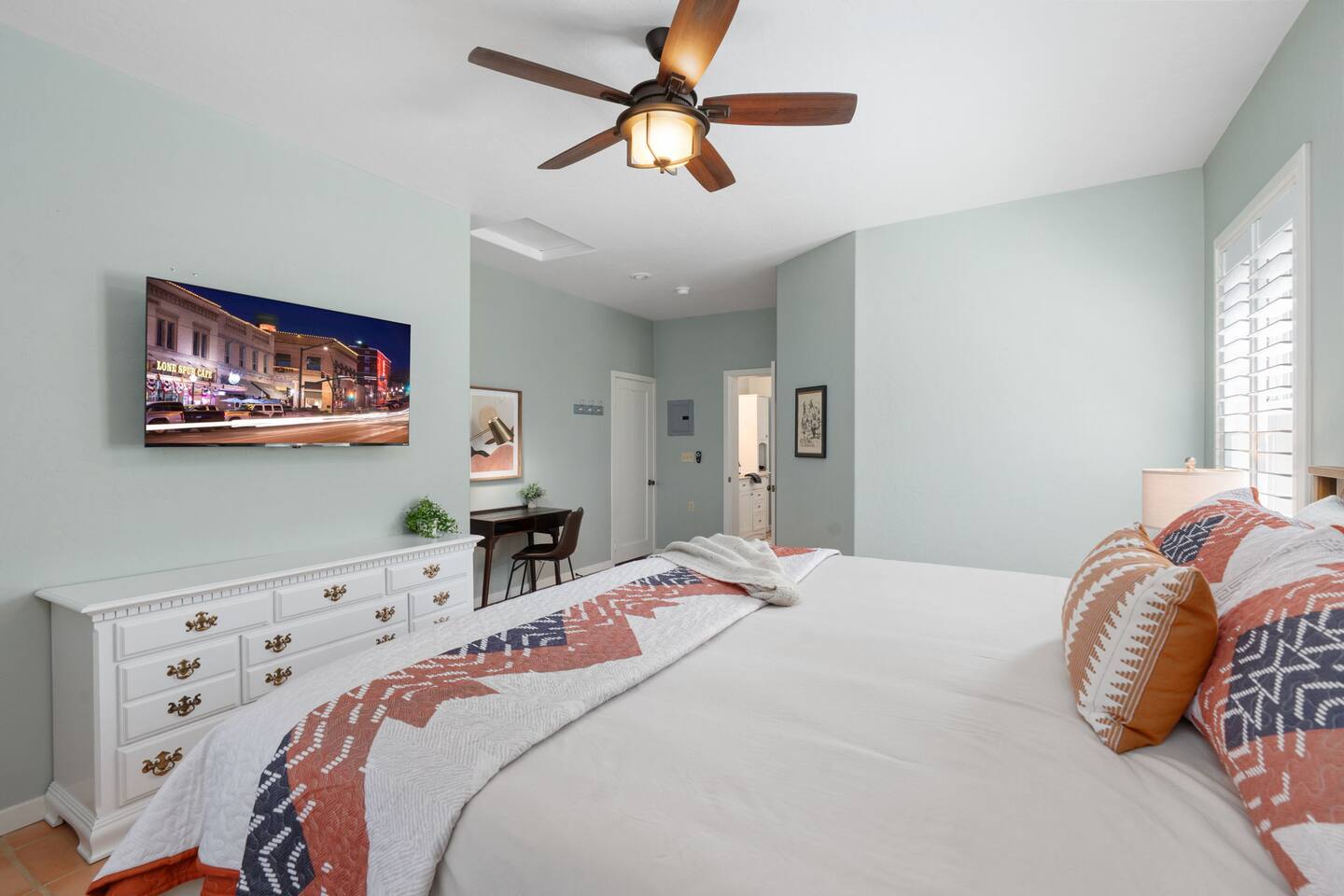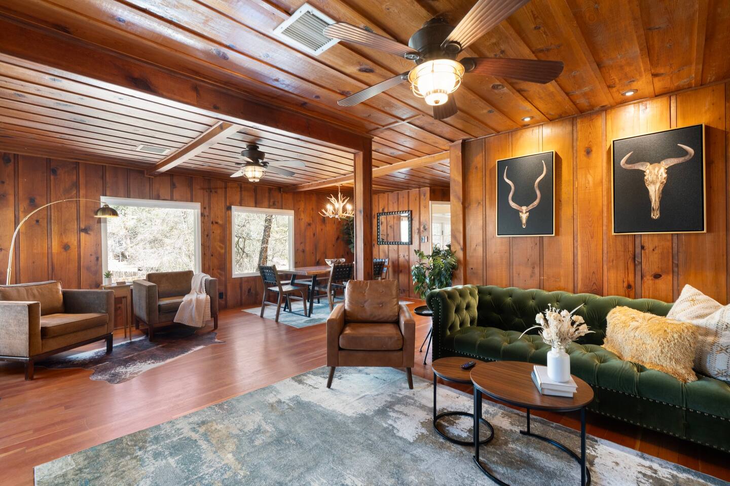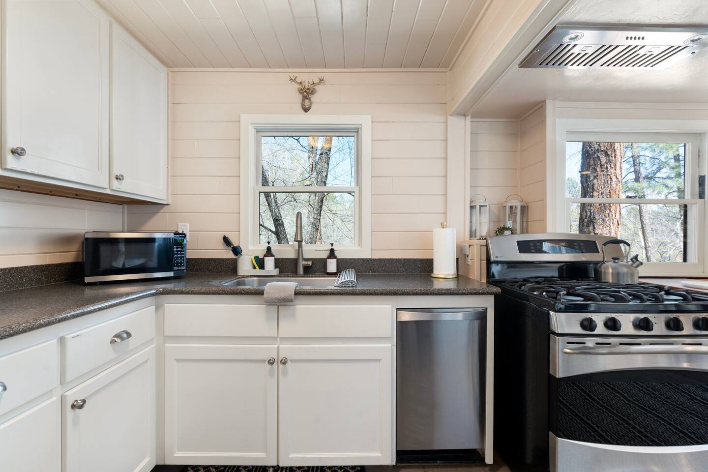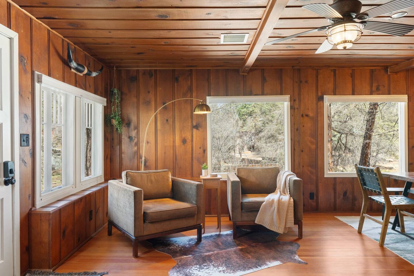 PROXIMITY: * Located in the iconic Mountain Club neighborhood * Enjoy nature walks * 0.6 mile from Safeway * 1.1 miles from LazyG Brewhouse * 1.5 miles from the Yavapai County Courthouse/Whiskey Row * 2.5 miles from the World’s Oldest Rodeo Grounds * 3.7 miles from Thumb Butte Hiking Trail #33 * 6.9 miles from Watson Lake * 10.6 miles from Antelope Hills Golf Course * 1 hour drive to Jerome * 1.25 hour drive to Cottonwood/wineries * 1.5 hour drive to Sedona .* 1.75 hour drive to Phoenix * 2.5 hour drive to Grand Canyon HOME: ✔ Central Air AC & heat ✔ In the mountains surrounded by towering pines (yes, there are neighboring cabins, we are not secluded) ✔ 3 bedrooms with king beds ✔ 2 full bathrooms (jetted clawfoot tub) ✔ Fully Fenced in yard (perfect for dogs) ✔ Full kitchen w/ dining room and breakfast bar ✔ Living room w/ wood burning fireplace (display only) ✔ Board games ✔ Outdoor firepit and 3 separate outdoor patios ✔ Onsite laundry room KITCHEN: ✔ Kitchen stocked w/ all essentials ✔ Keurig coffee machine & drip coffee station w/ pods ✔ Breakfast bar with a view LIVING ROOM: ✔ 65" Smart TV, BYOP (Bring your own passwords) ✔ Record Player ✔ 6 seater dining table BEDROOM 1: ✔ King size firm mattress ✔ Cotton linens ✔ Laptop-friendly workspace w/ free WiFi ✔ 43" Smart TV, BYOP (Bring your own passwords) ✔ Sound machine ✔ Side lamps and USB plugs ✔ Attached bathroom BEDROOM 2: ✔ King size firm mattress ✔ Cotton linens ✔ 40" Smart TV, BYOP (Bring your own passwords) ✔ Sound machine ✔ Side lamps and USB plugs BEDROOM 3: ✔ King size firm mattress ✔ Twin size trundle mattress ✔ Cotton linens ✔ 40" Smart TV, BYOP (Bring your own passwords) ✔ Sound machine ✔ Side lamps and USB plugs ✔ Only door to backyard from inside the house BATHROOM 1: ✔ Attached to bedroom 1 ✔ Shower on jetted claw foot tub ✔ Shampoo/Conditioner/Body Wash provided BATHROOM 2: ✔ Hallway bathroom ✔ Shower w/ glass door ✔ Shampoo/Conditioner/Body Wash provided BACKYARD: ✔ Fully Fenced ✔ Propane Firepit ✔ Cornhole NOTE: This property sleeps 7 guests in 4 beds. The twin trundle is located under the king bed in bedroom 3.