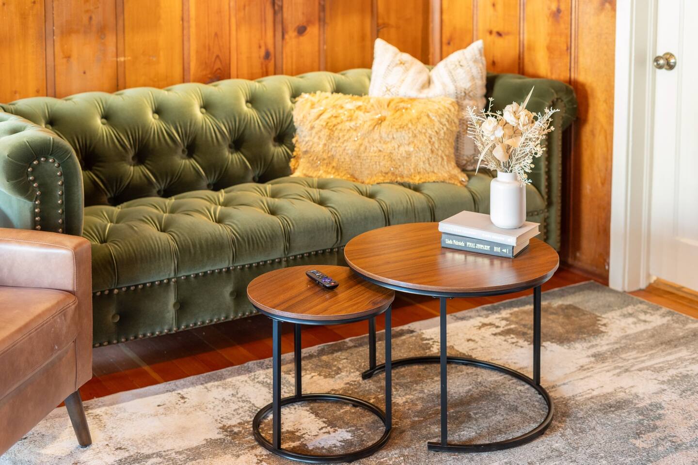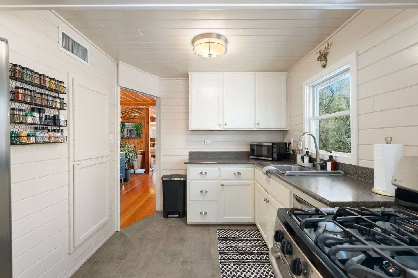 CAMERAS: There are three cameras on the property. (1) One that views the front porch (2) One that views the backyard door (3) One that views the front patio **These are only monitored when needed. PETS: Dogs are welcome! Our yard is fully fenced, making it a safe space for your furry friends to roam. Responsible pet owners will appreciate the large dog kennel, poop bags, scooper, dog door, and bowls we provide. For their safety, please kennel pets if they are left alone in the cabin. We ask guests to pick up after their pets during their stay. To keep our furniture in great condition, pets should stay off the furniture. However, we do provide covers for the couch and chairs to help avoid any damage. Please note, the damage protection plan does not cover pet-related damage. BEDROOM: The 3rd bedroom (with the twin trundle) has frosted skylights and ceiling high windows that view the trees. For this reason, this room can be bright despite shades on the other windows. PROPANE: We attempt to ensure propane in the firepit, but it is not guaranteed. PEST HAPPEN: Given our wooded location, our property is prone to all types of wildlife, including spiders, mice, etc. We attempt to keep all critters outside and do employ pest services but cannot guarantee you will not experience any pest encounters. CANCELLATION POLICY: We adhere to our cancellation policy and highly recommend purchasing travel insurance or using a credit card that offers travel insurance coverage. Please note that road closures and snowfall may occur during the winter and spring seasons. PROTECTION PLAN: A $35 management fee is added to each booking. This fee goes towards a damage claim protection plan that will protect the guest against any accidental damage up to $1,000. We are on septic and the protection plan does not cover septic damage. TPT License #: 21605170